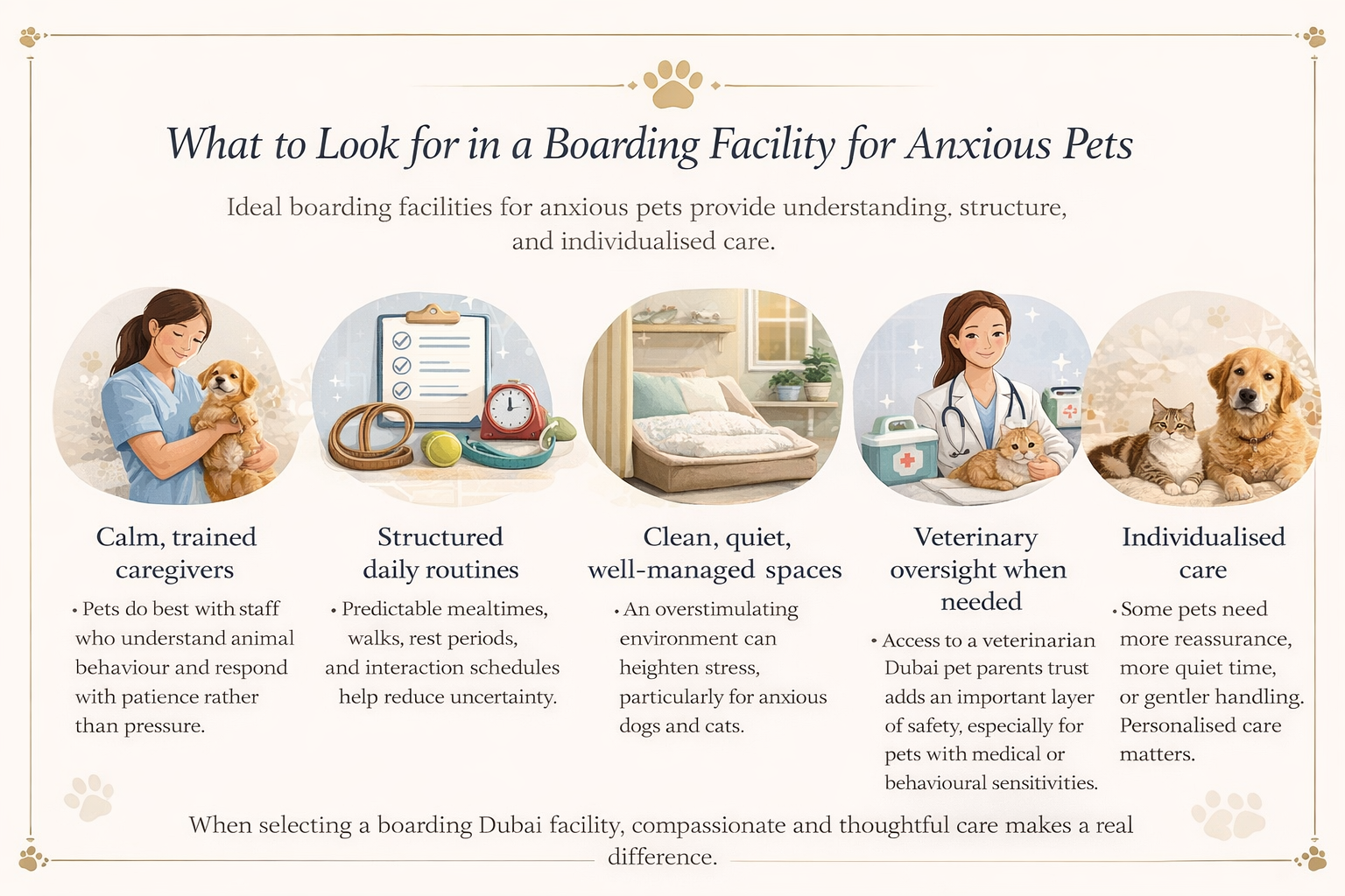 Thoughtful ways to help your pet feel calm, secure, and cared for during a boarding stay in Dubai.